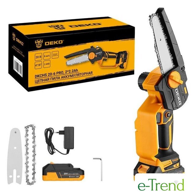| Комплект поставки | - Пила- Аккумулятор 2 шт- Зарядное устройство- Инструкция- Цепь 4"/6"- Гарантийный талон |