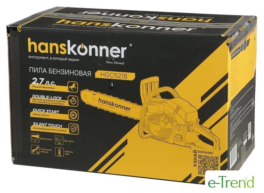 | Комплект поставки | - цепь,, - шина,, - защитный кожух шины,, - емкость для топлива,, - отвертка,, - ключ,, - напильник,, - зубчатый упор,, - крепеж,, - инструкция. |