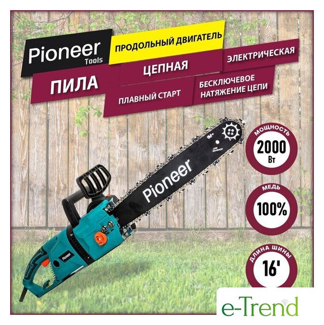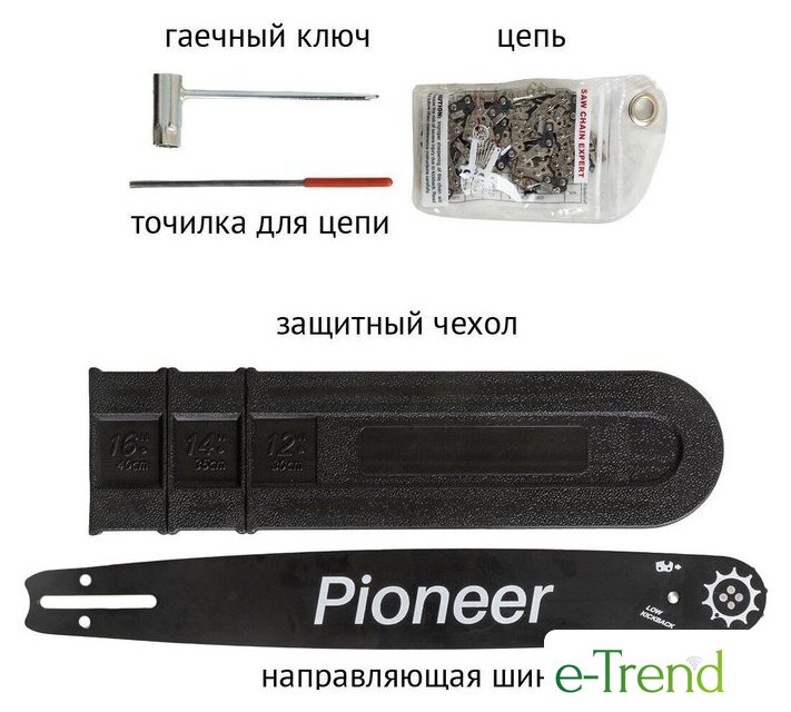 | Комплект поставки | - Пила- Шина- Цепь- Кожух- Защитный экран- Гаечный ключ- Руководство по эксплуатации- Гарантийный талон |