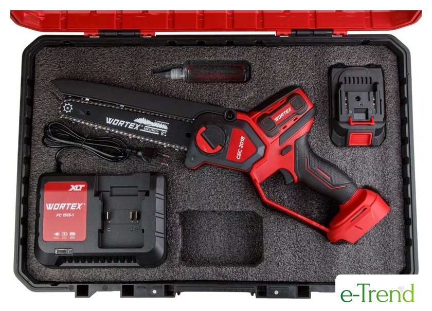 | Комплект поставки | - Цепная пила с шиной и цепью;- Маслёнка;- Инструкция по эксплуатации;- Аккумулятор CBL 1840-1, 4 А*ч - 1 шт.;- Зарядное устройство FC 1515-1, 2 А - 1 шт.;- Кейс; |