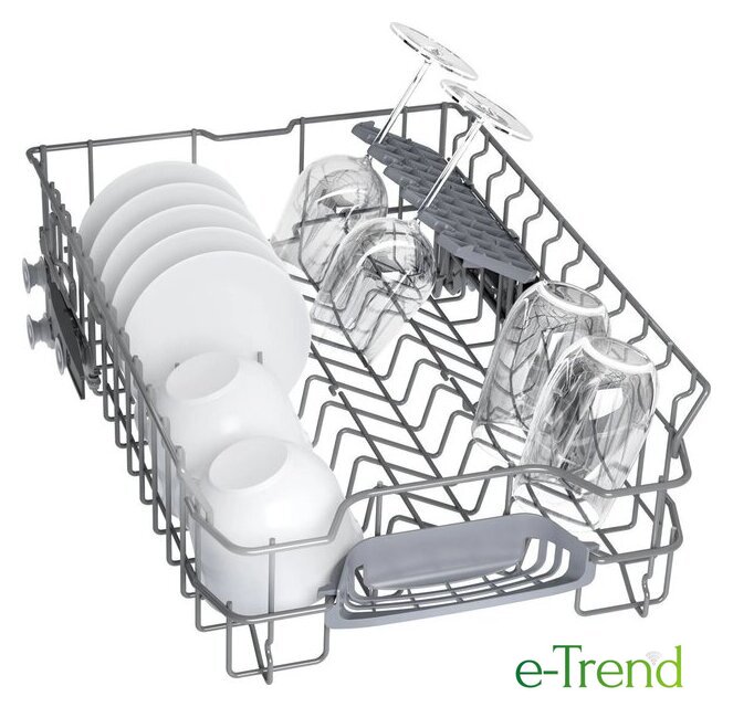 Особенности верхней корзины | регулировка положения по высоте, держатели для бокалов |