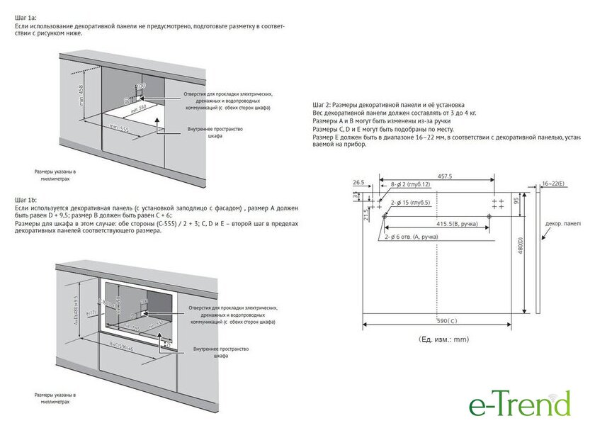 Размеры ниши для встраивания |