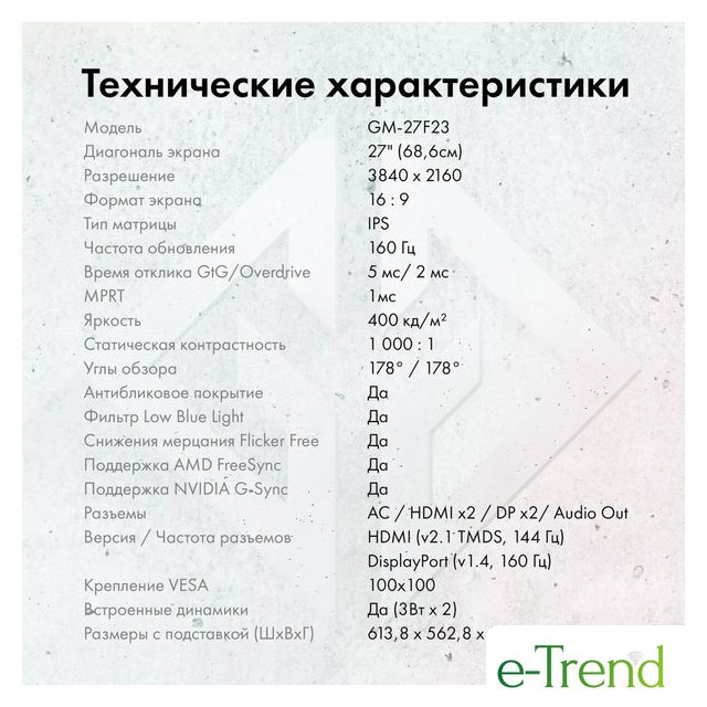 | Метки | игровой от 144 Гц, с регулировкой по высоте |