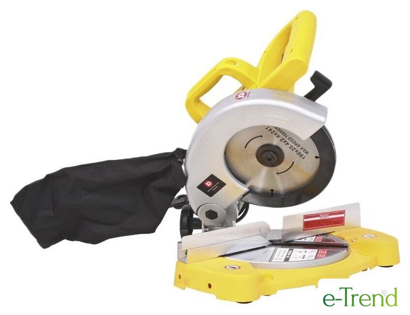 | Комплектация | - Пила торцевая электрическая 1- Диск пильный (по дереву) 1- Вертикальный зажим (струбцина) 1- Ключ крепления диска 1- Щётки графитовые 2- Пылесборник 1- Дополнительные опоры 2- Упаковка 1- Руководство по эксплуатации 1 |
