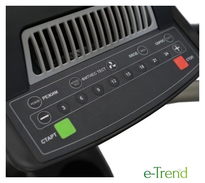 | Показания на дисплее | время, скорость, дистанция, уровень нагрузки, расход калорий, пульс, темп, Ватт, фитнес тест, температура в помещении |