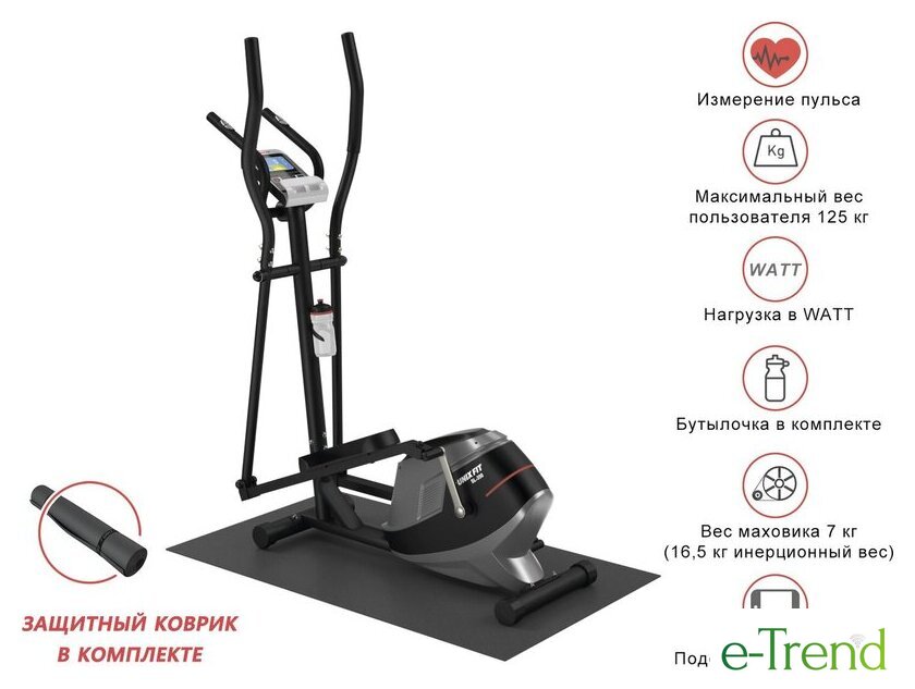 | Все программы | 10 предустановленных,1 ручной режим, 1 Body Fat, 5 пользовательские, 3 пульсозависимые (с предустановленными значениями 55%, 75%, 95% от целевого максимального пульса), 1 программа контроля нагрузки в Ватт |