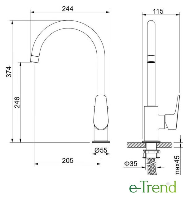 | Высота излива | 246 мм |