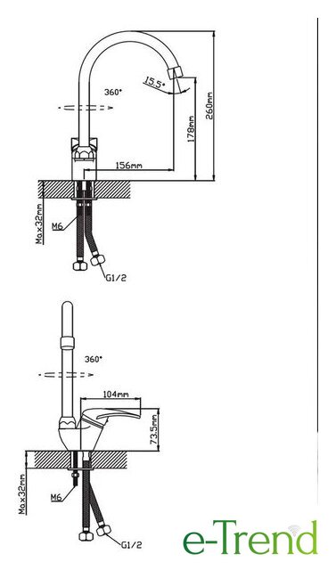 | Поворотный излив | 360 ° |