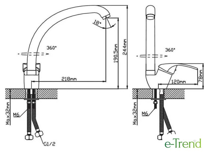 | Поворотный излив | 360 ° |