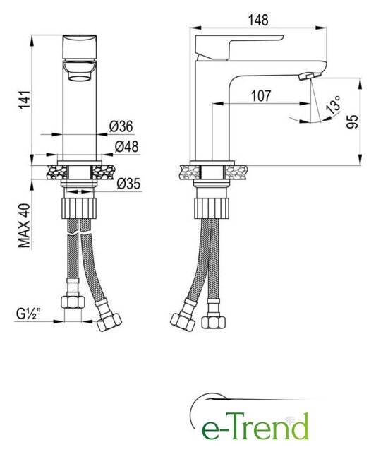 | Поворотный излив | 13 ° |