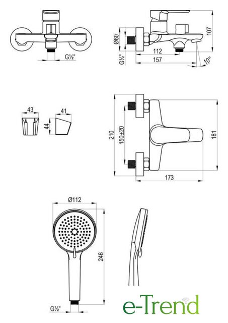| Длина (вылет) излива | 112 — 157 мм |