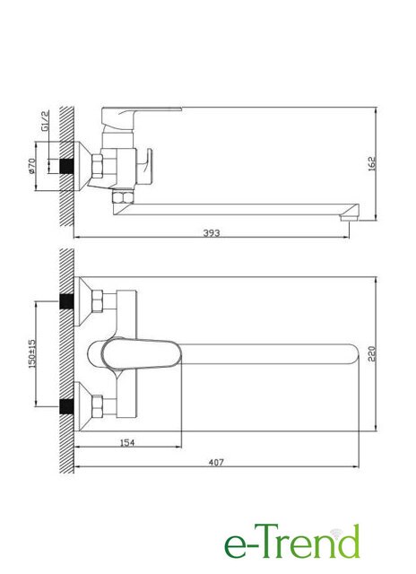 | Длина (вылет) излива | 393 мм |