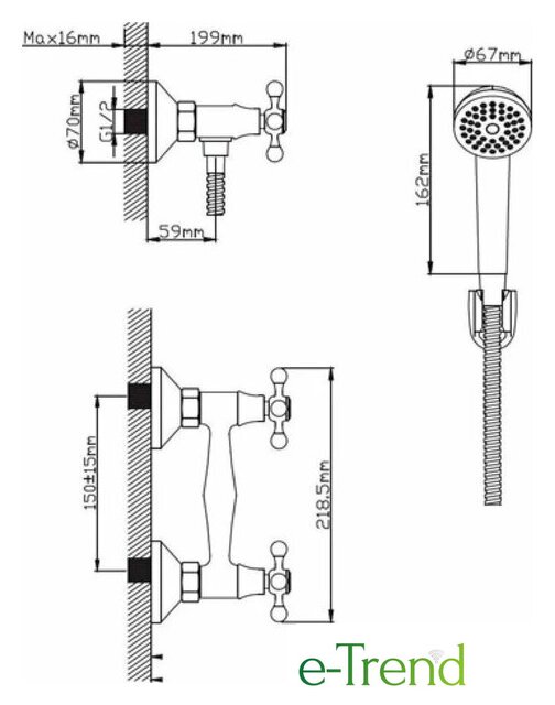 | Душевой гарнитур | с 1 режимом |