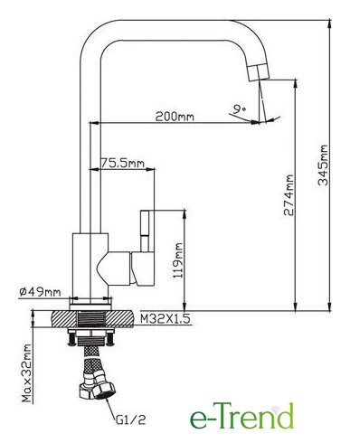| Высота излива | 274 мм |