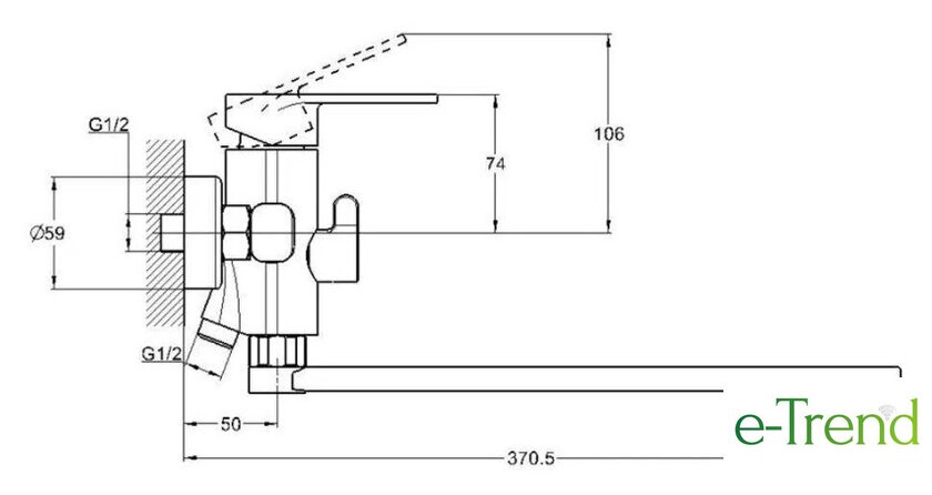 | Длина (вылет) излива | 370.5 мм |