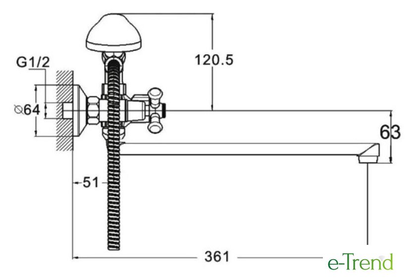 | Длина (вылет) излива | 361 мм |