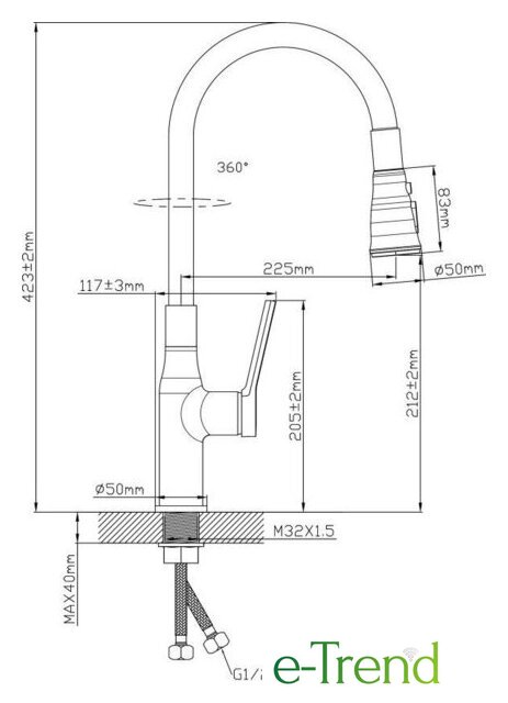 | Поворотный излив | 360 ° |