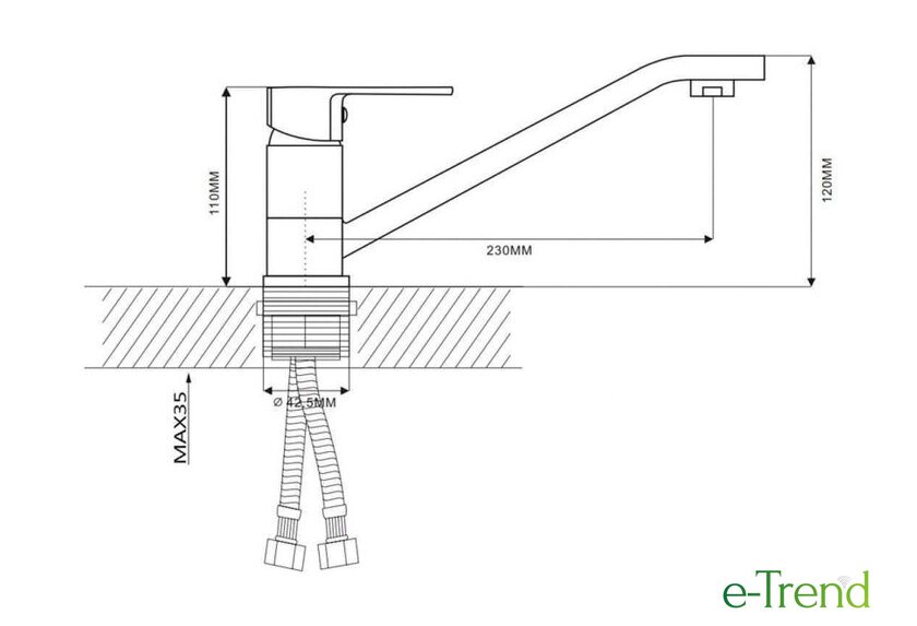 | Длина (вылет) излива | 230 мм |