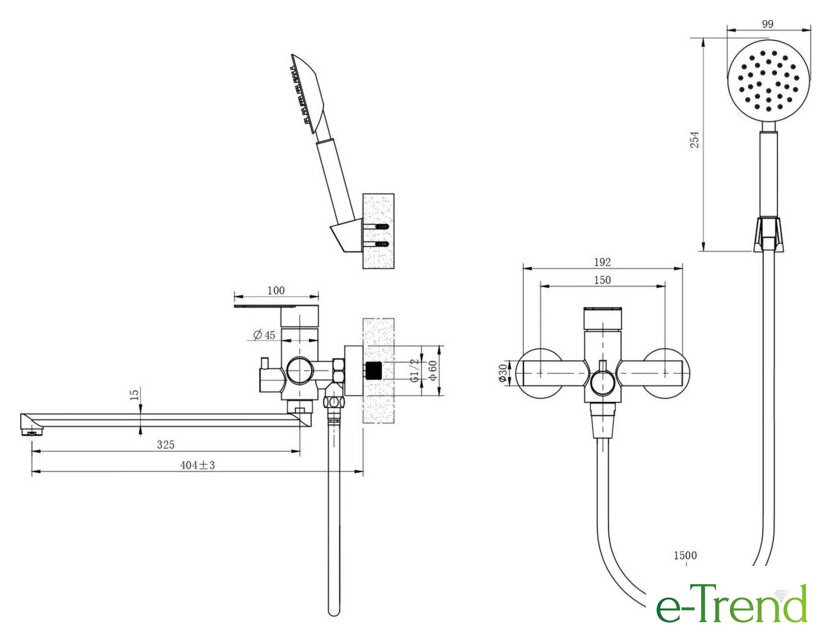 | Душевой гарнитур | с 1 режимом |