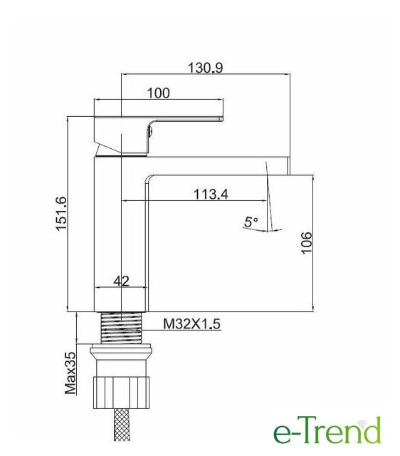 | Длина (вылет) излива | 113.4 мм |