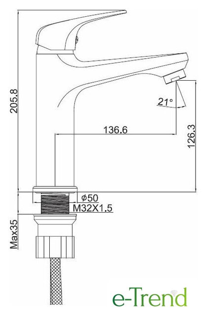 | Длина (вылет) излива | 136.6 мм |