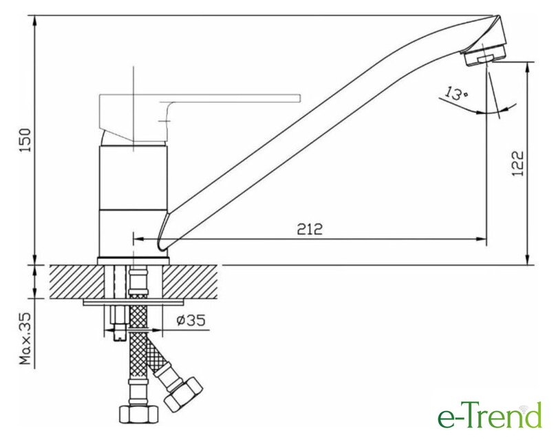 | Длина (вылет) излива | 212 мм |
