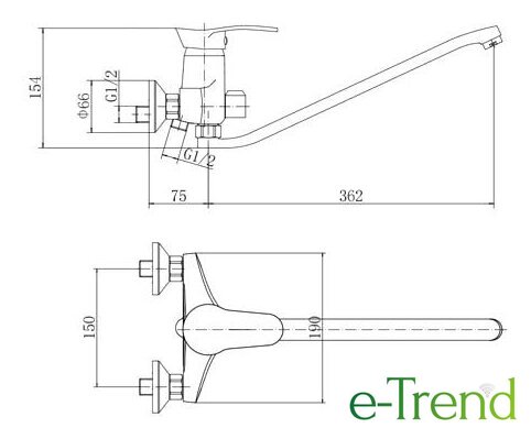 | Длина (вылет) излива | 0 — 362 мм |