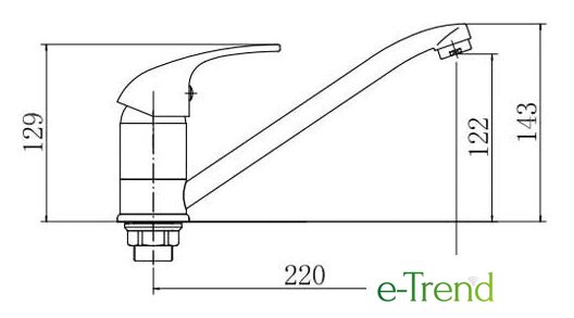 Длина (вылет) излива 0 — 220 мм