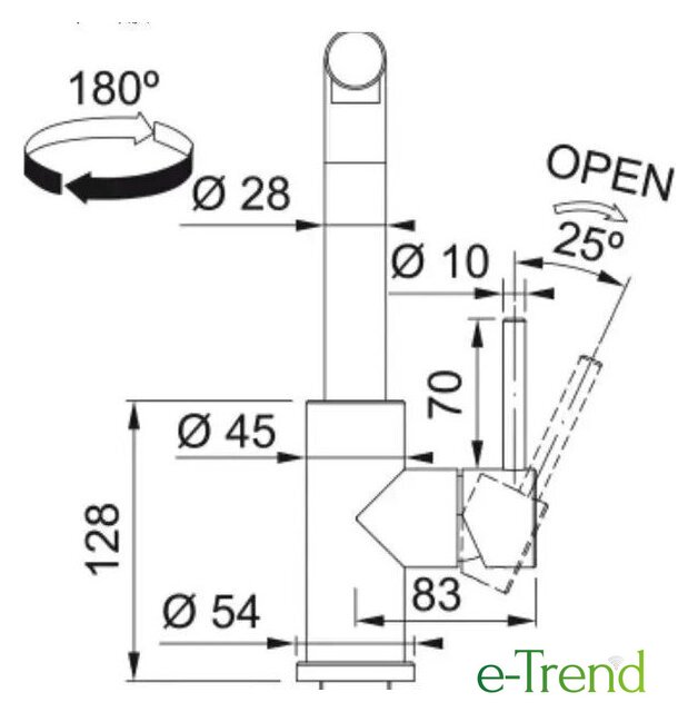 | Поворотный излив | 180 ° |