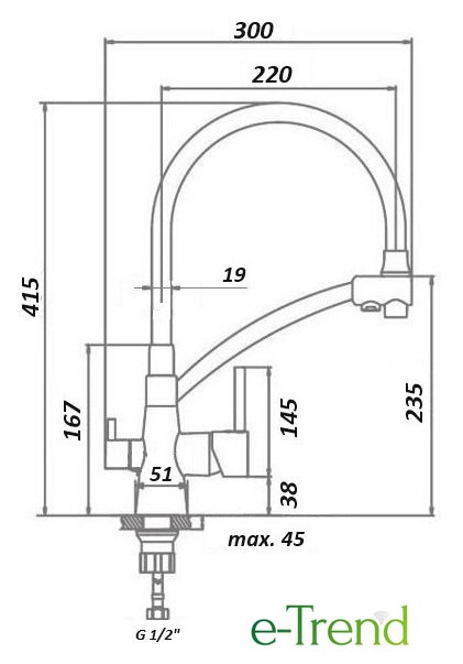 | Длина (вылет) излива | 224 мм |