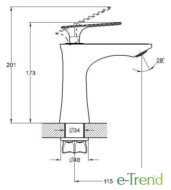 | Длина (вылет) излива | 115 мм |