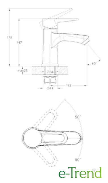 | Длина (вылет) излива | 113 мм |