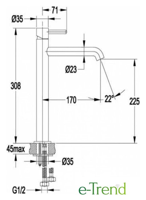 | Длина (вылет) излива | 170 — 170 мм |