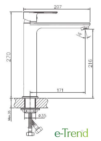 | Длина (вылет) излива | 171 мм |