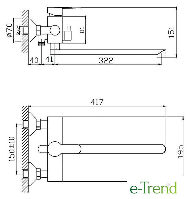 | Длина (вылет) излива | 322 мм |