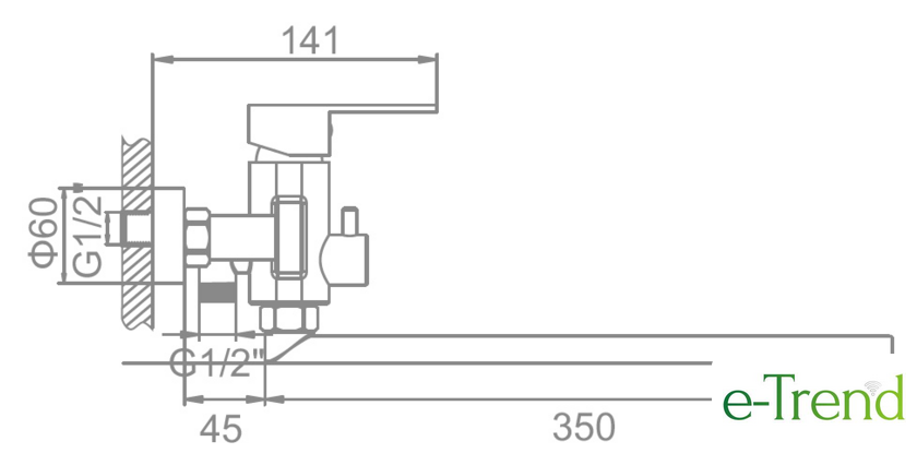 | Длина (вылет) излива | 350 мм |