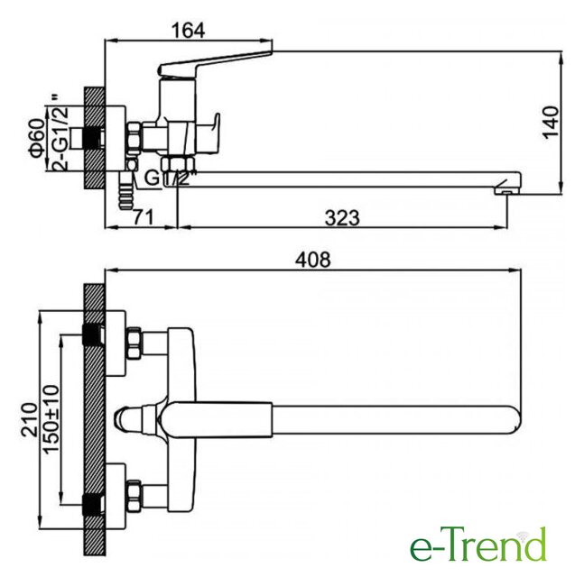| Длина (вылет) излива | 323 мм |
