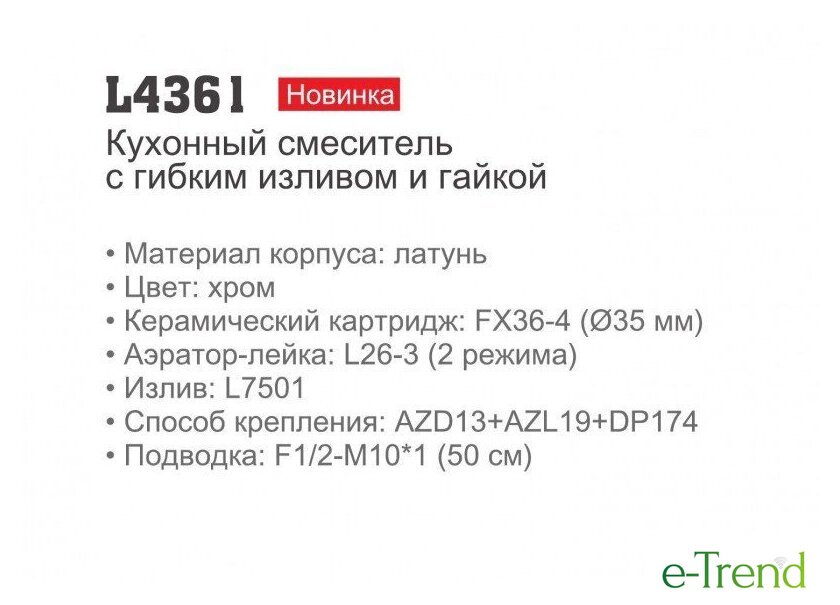 | Выдвижной/гибкий излив | есть |