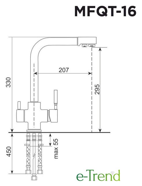 Длина (вылет) излива 207 — 207 мм