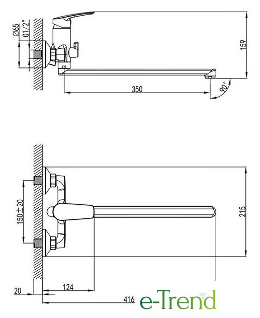 | Длина (вылет) излива | 350 мм |