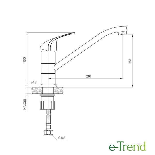 | Длина (вылет) излива | 216 мм |