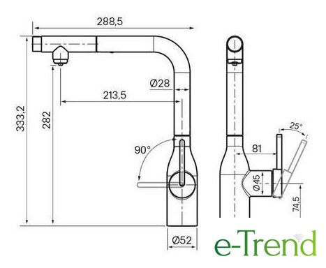 | Высота излива | 282 мм |