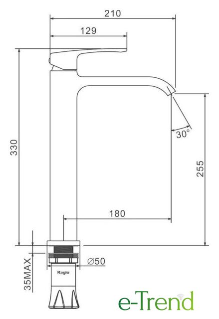 | Длина (вылет) излива | 180 мм |