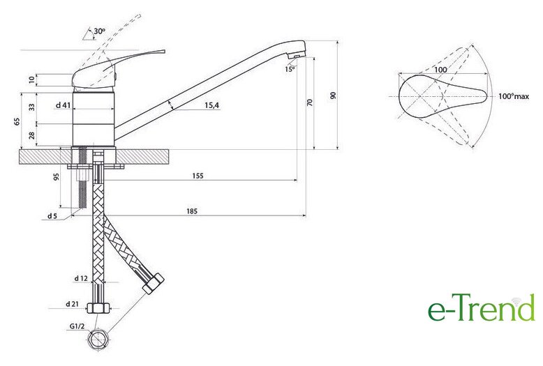 | Длина (вылет) излива | 155 — 155 мм |