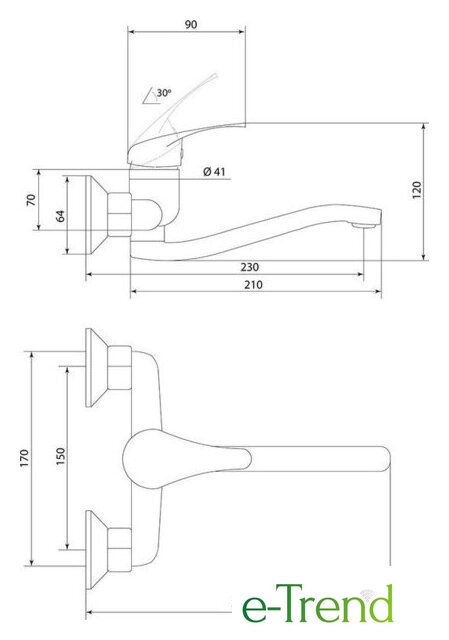| Длина (вылет) излива | 230 — 230 мм |