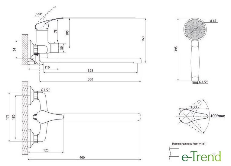 | Длина (вылет) излива | 325 — 325 мм |