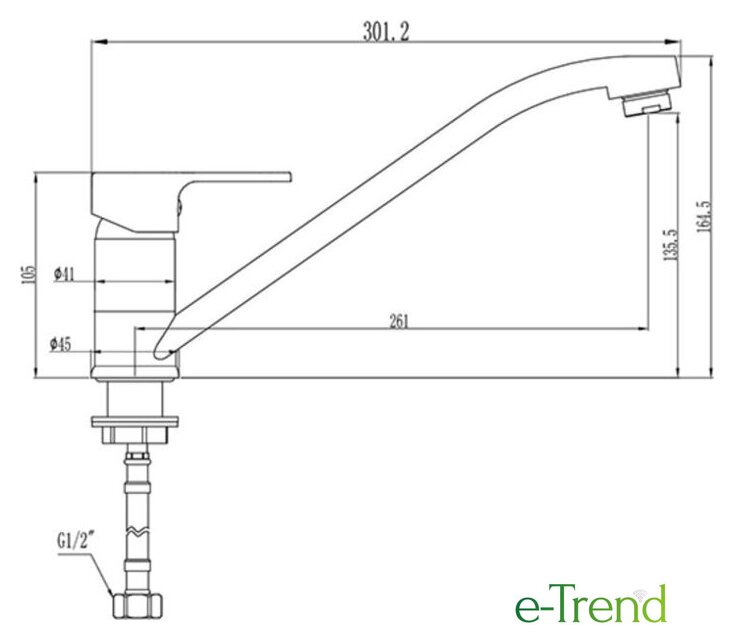 | Длина (вылет) излива | 261 мм |