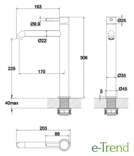 | Высота излива | 225 мм |