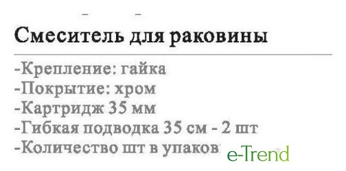 | Назначение | для умывальника |
