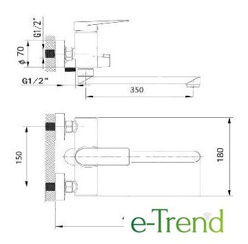 | Длина (вылет) излива | 350 мм |